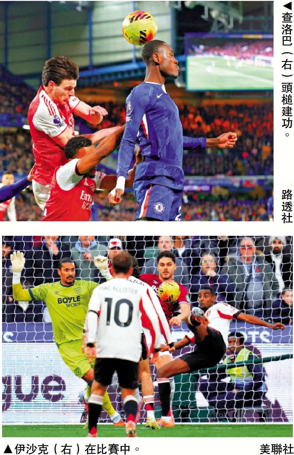 【大公報訊】記者譚德龍報道:阿仙奴於昨晨英超「倫敦打吡戰」,在接近1小時多踢1人之下作客只能逼和車路士1:1,榜首領先升上次席的曼城之優勢稍稍減至5分。利物浦就止住連敗跌勢,在阿歷山大伊沙克終於取得加盟後的英超首球協助下,作客贏韋斯咸2:0。