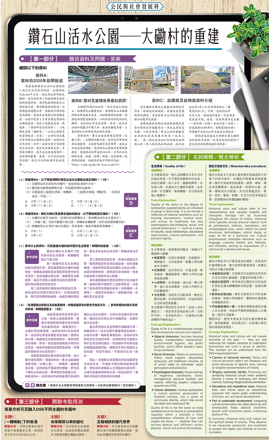 (d)「香港發展公營租住及出售房屋時,亦應保留原有的歷史文物及文化。」參考所提供的資料及就你所知,解釋這個看法。(8分)