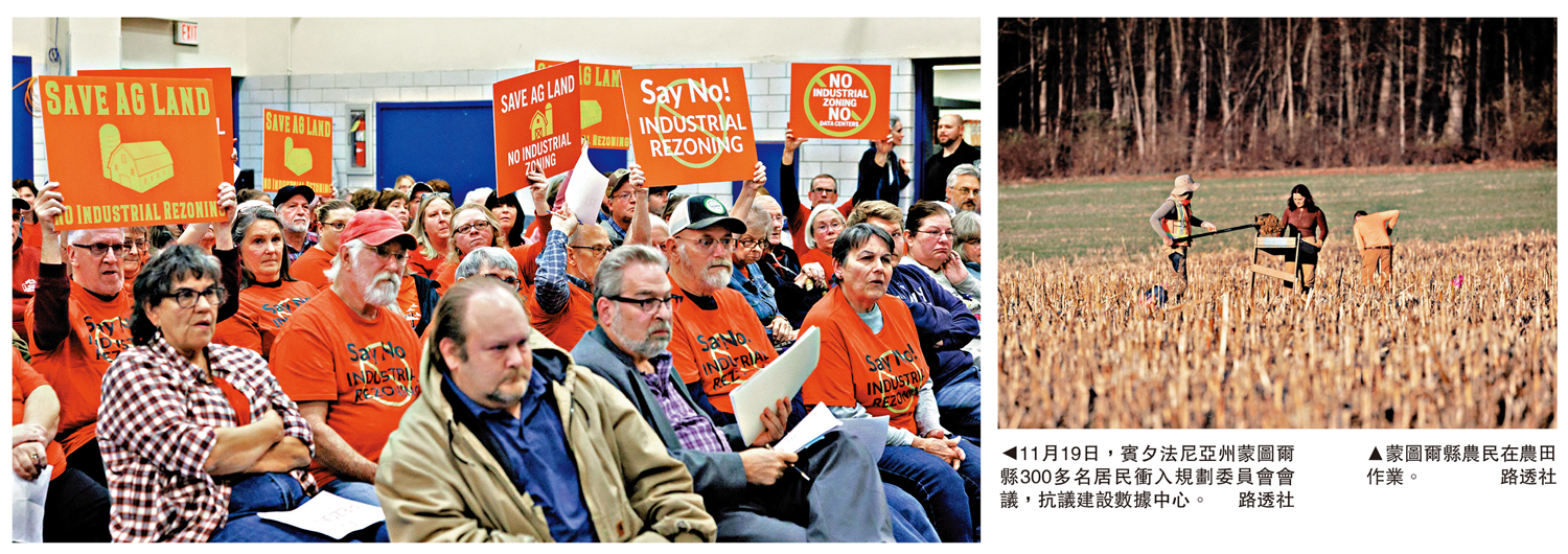 美國總統特朗普1月上任以來,急於在全美各地大力推進人工智能(AI)基礎設施建設,引發反對聲浪,其中不少是特朗普的忠實支持者。日前在賓夕法尼亞州蒙圖爾縣的一場土地重劃會議上,超過300位居民衝入會場,抗議將農田轉化為工業用地、並用於建設AI數據中心的計劃。分析指,興建數據中心日益成為撕裂美國的關鍵議題之一,在MAGA(讓美國再次偉大)陣營內部尤為明顯。