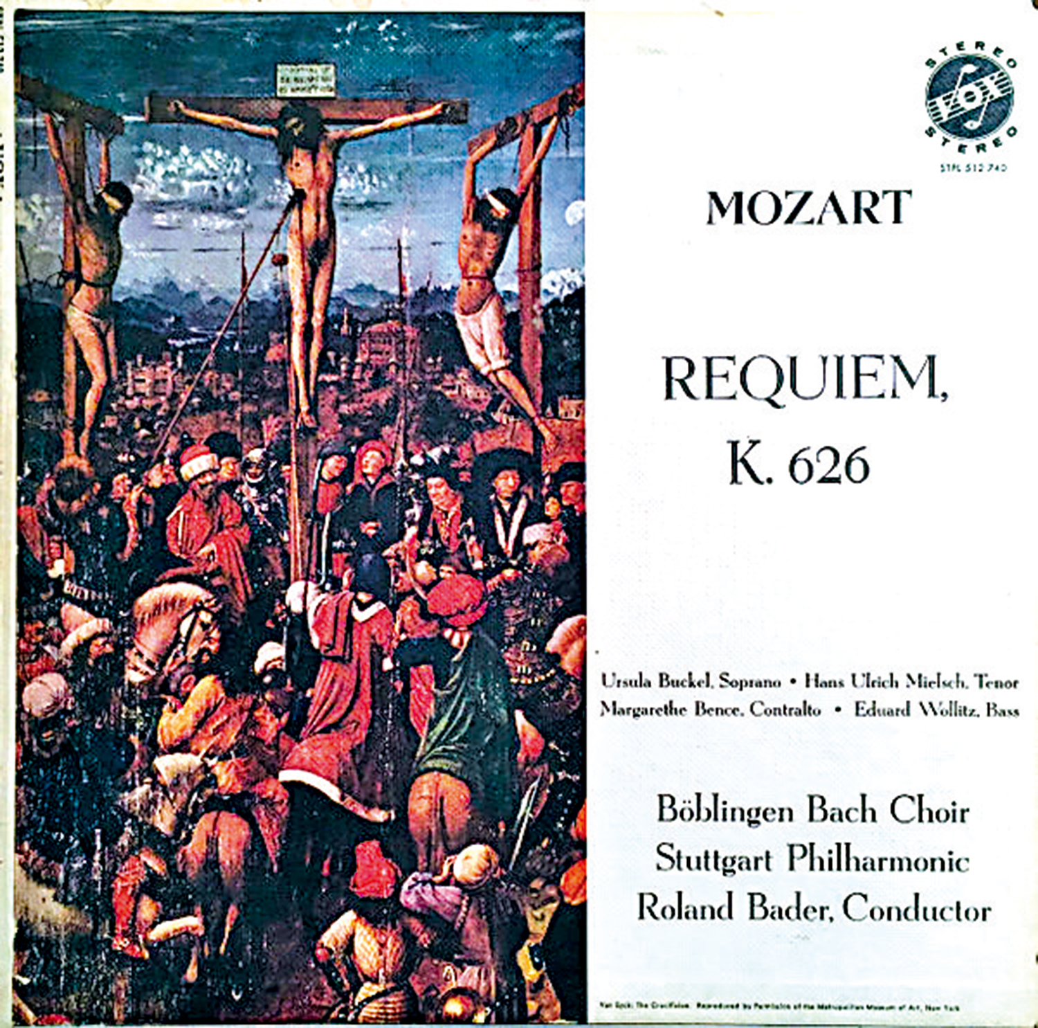 上周感恩節,香港卻經歷了嚴重的火災。隔着手機屏幕都能感受到那些失去家人、無家可歸的同胞們的無助與絕望。本周,想特別分享一張莫扎特的《安魂曲》來悼念逝者。這張美國VOX廠牌於一九六四年灌錄並發行的黑膠唱片,收錄了這首奧地利「音樂神童」的臨終前遺作。專輯由德國指揮家羅蘭德·巴爾德執棒斯圖加特愛樂樂團和伯布林根巴赫合唱團,攜手德國女高音厄休拉·巴克爾、男高音漢斯·烏爾里希·梅爾施、女低音瑪格麗特·本絲和男低音愛德華·沃利茨聯袂演繹。唱片封套選擇了收藏於美國大都會藝術博物館的「弗拉芒原始派」巨匠揚·凡·艾克的祭壇畫《基督受難》局部。