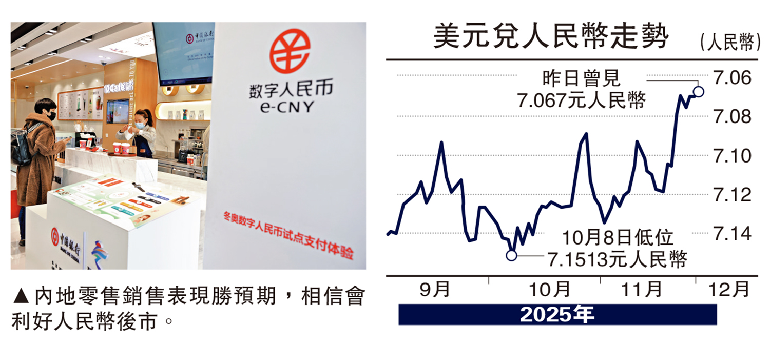 除此之外,人行自近年來持續釋放「適度寬鬆」的信號,在一定程度上對人民幣構成支持。隨着內地持續刺激經濟,配合人行加大結構性政策支持,人民幣有望逐步回穩走強。離岸人民幣今年表現較佳,美元兌離岸人民幣由年初約7.35水平回落至今約7.07水平,人民幣的升幅達3.8%。我們認為離岸人民幣有望挑戰7算,初步目標價約6.99水平。