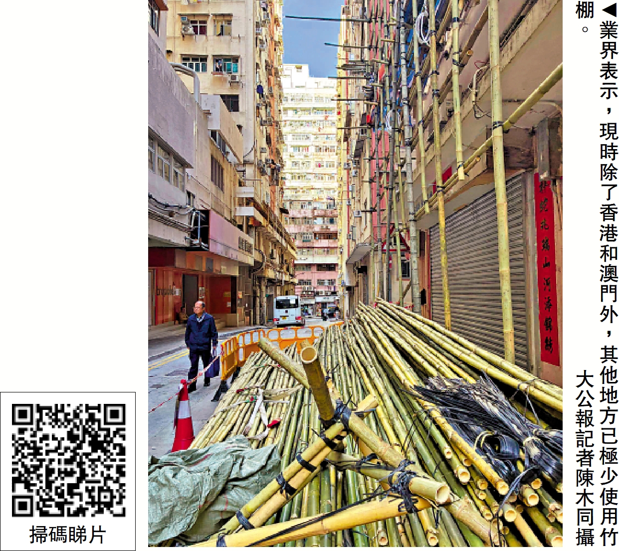 梁善偉坦言,自己從事竹棚業超過50年,也是靠竹棚工作起家,但這場世紀大火發生後,竹棚要被淘汰也是無可奈何,「畢竟發生了這樣的事,(竹棚要被淘汰)是有些遺憾,但綜觀全世界,除了香港和澳門,還真找不到還在用竹棚的地方,內地也換成鐵棚很多年了。」但他認為,在某些特殊情況下,例如小型工程的吊棚、或者老舊房子的工程,竹棚還是無可取代,「金屬棚固定需要打釘,舊樓的外牆結構未必承受得住。」