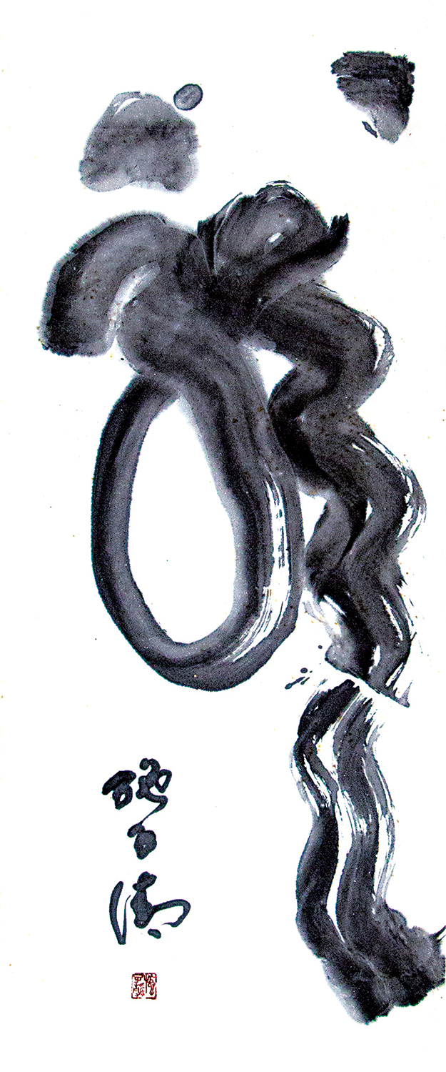 意趣兼得,遺貌取神。談及師古的書法學習過程中學書之人應該如何臨帖,施子清主張「意臨」:「臨古並非追求形似,而是注重精神氣質的把握和個人意趣的抒發。」本次展場中的篆書作品即可見施子清古拙蒼茫的篆書新貌。他認為「意臨」能讓書家擺脫窠臼和僵化,從而「化古為我」。「就好像我臨《散氏盤》,就是要一直琢磨當中的筆墨韻味,不斷地練習和感悟,這才是臨摹和師古最難的。」