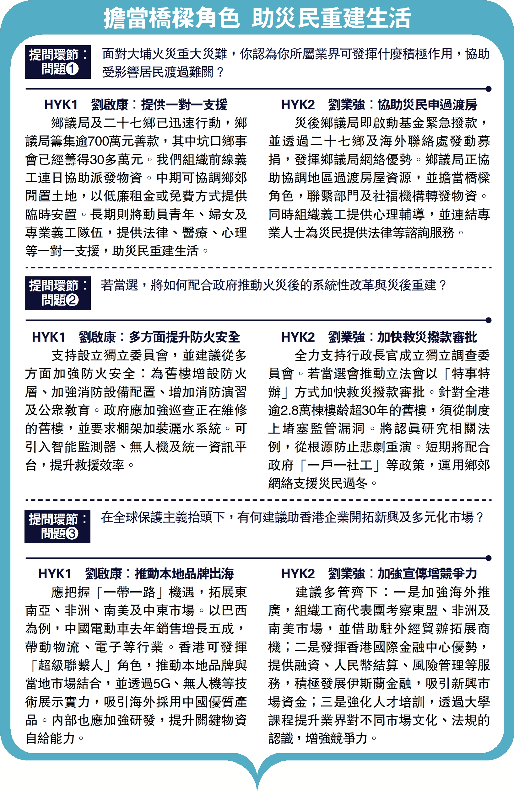 面對大埔火災重大災難,你認為你所屬業界可發揮什麼積極作用,協助受影響居民渡過難關?