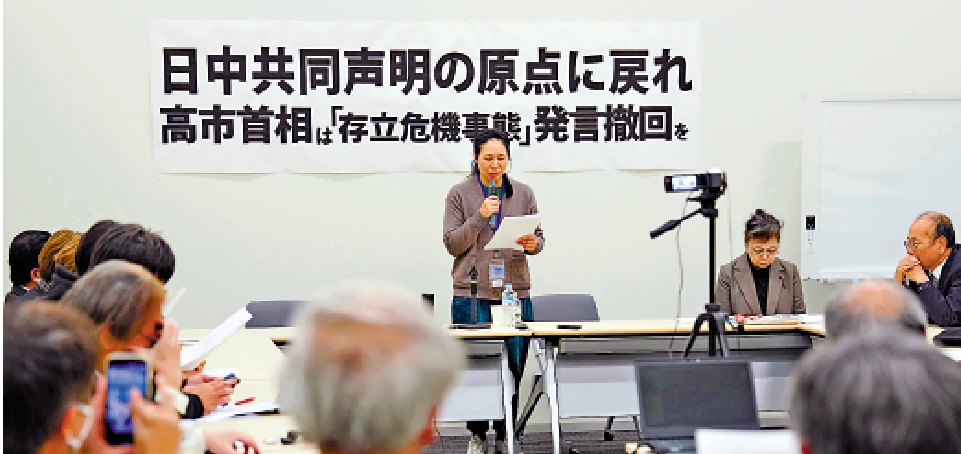 田中均認為,導致日中關係徹底惡化的致命一擊出現在11月7日,高市在眾議院預算委員會會議上就「台灣有事」進行答辯,稱「無論怎麼想都屬於構成存亡危機事態的情況」。雖然事後她以「只是假設了特定情況,今後將謹慎發言」等措辭表達了反省之意,但並未展現出回應中方訴求、撤回「干涉內政」言論的態度。對於這種膠着狀態,中方加大了反制力度,呼籲本國公民避免前往日本,事實上叫停了日本水產品的進口。人員往來、經濟活動都開始受到影響。
