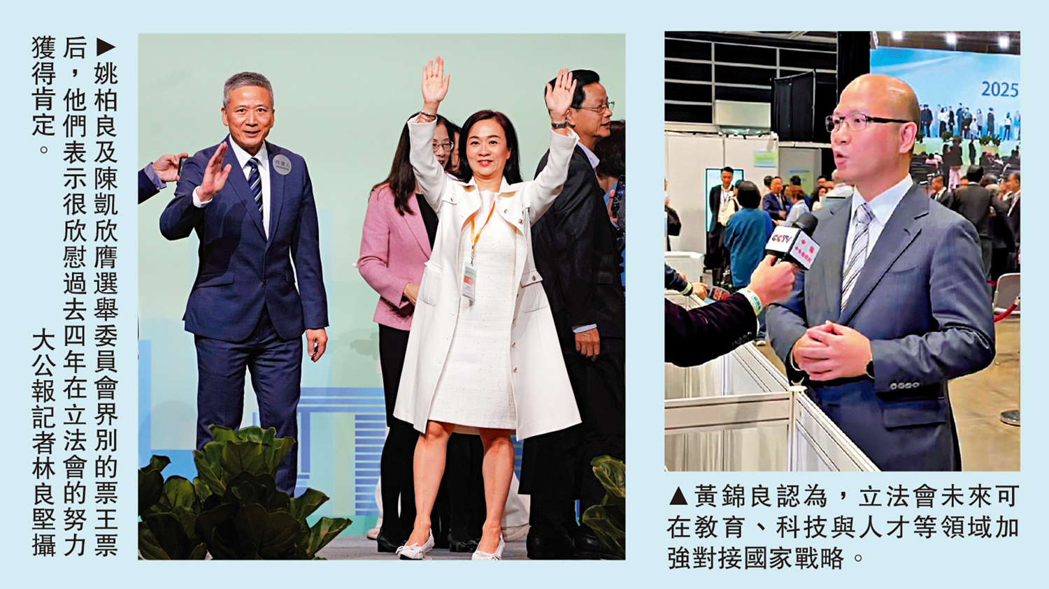香港教育工作者聯會主席黃錦良則指出,作為港區人大代表及新一屆議員,將更充分發揮雙重身份的作用。他表示,未來除監督政府及服務市民外,議員更需凝聚社會力量,為香港的產業升級與公共發展獻策出力。他指出,香港在國家發展大局中肩負重要角色,尤其在「八大中心」建設及國家「十五五」規劃推進期間,議員應主動參與相關政策配合。他認為,立法會未來可在教育、科技與人才等領域加強對接國家戰略,助力香港發展為科技教育人才樞紐,從而為中國式現代化進程作出貢獻。