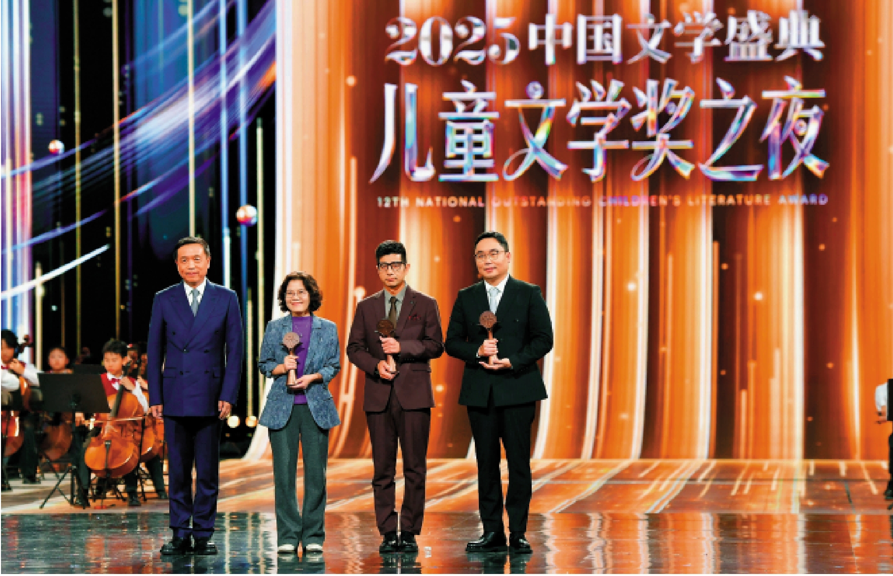 文壇有盛事,洞庭水連天。近日,「2025中國文學盛典·兒童文學獎之夜」在湖南長沙舉行。活動現場,為小說、詩歌、童話、科幻文學、兒童繪本以及青年作者短篇佳作等領域的優秀兒童文學作品頒獎。蔡崇達、童子、趙麗宏、王威廉、蔡皋等紛紛登台領獎。\大公報記者 張寶峰