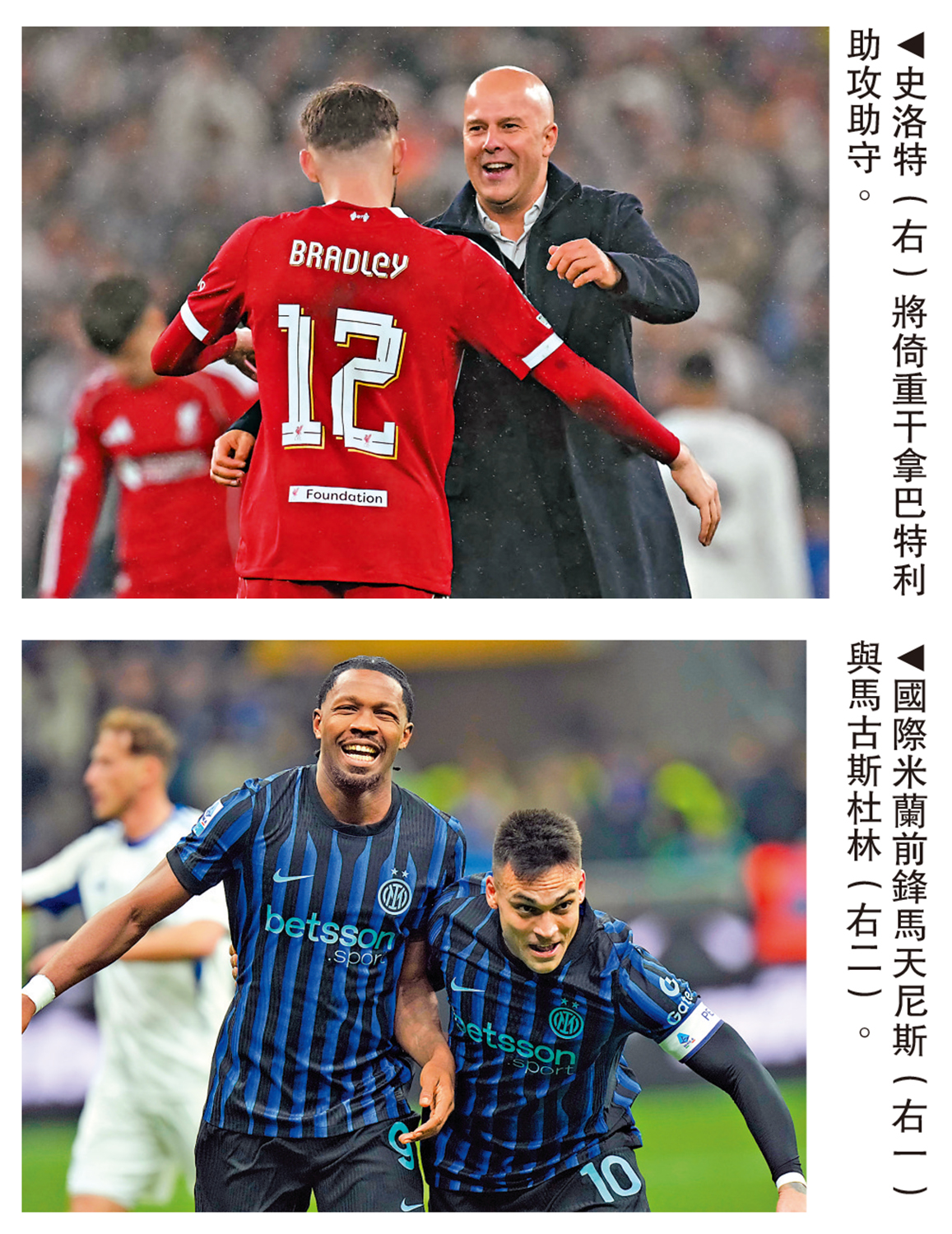歐聯5輪賽事3勝2負的利物浦,明晨哀兵作客意甲勁旅國際米蘭,不論沙拿是否候命、正選或續居後備,恐怕球隊的頹勢仍會持續。上仗甫復出又累積滿黃牌需於下輪英超停賽的干拿巴特利必續任正選右閘,另一關注點是祖高美斯會否取代表現比沙拿更不濟的中堅伊巴希馬干拿迪。