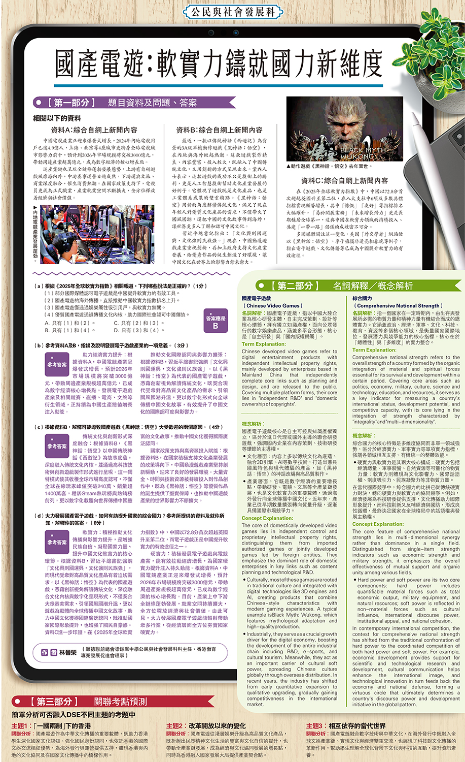 (d)大力發展國產電子遊戲,如何有助提升國家的綜合國力?參考所提供的資料及就你所知,解釋你的答案。(6分)