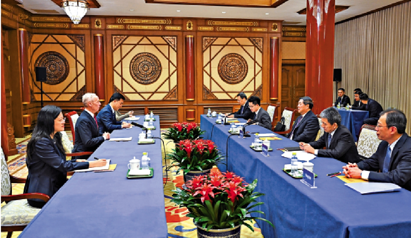 何立峰表示,今年以來中美兩國元首多次通話並在韓國釜山成功會晤,達成一系列重要共識。雙方應在兩國元首戰略引領下,堅持正確方向,保持合作勢頭,不斷拉長合作清單、壓縮問題清單。中國即將邁入「十五五」規劃開局之年,將持續擴大高水平對外開放,歡迎更多美國企業來華投資興業,力促中美經貿關係平穩健康可持續發展。