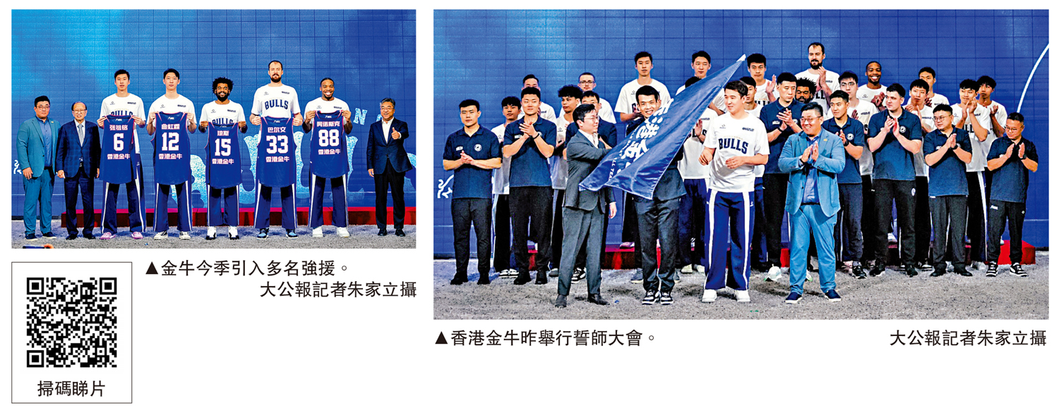 【大公報訊】記者朱家立報道:全國男子籃球聯賽(NBL)應屆冠軍香港金牛昨在九龍灣舉行2025至26賽季誓師大會,並邀請香港大公文匯傳媒集團副董事長、總經理鄭勇男,中國香港籃球總會副會長貝鈞奇為新援頒發球衣。連續兩季稱霸NBL的金牛,將以更堅定的決心向「三連霸」里程碑進發。
