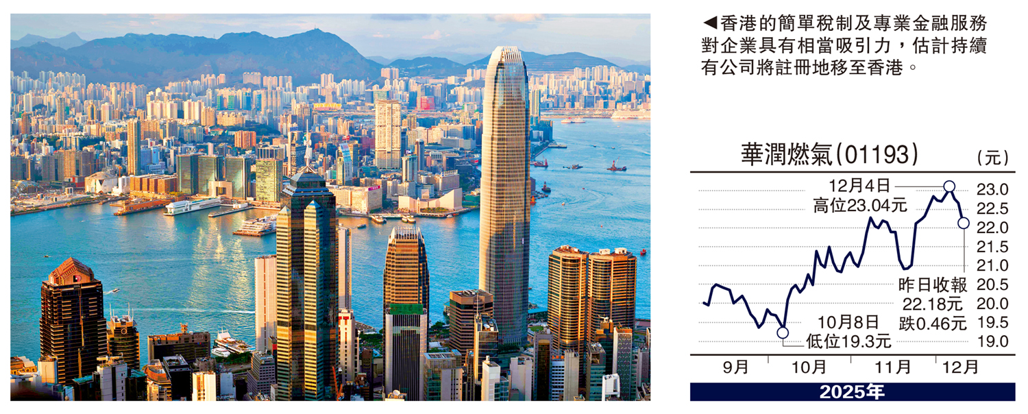 值得留意,華潤燃氣(01193)將註冊地由百慕達轉移至香港,明言遷冊決定主要是業務運營地區在內地,而香港作為國際金融中心,法律及稅收制度為企業提供友好的營商環境,遷冊可減少跨國合規複雜性及合規負擔,預期起示範作用,吸引更多企業在港註冊。