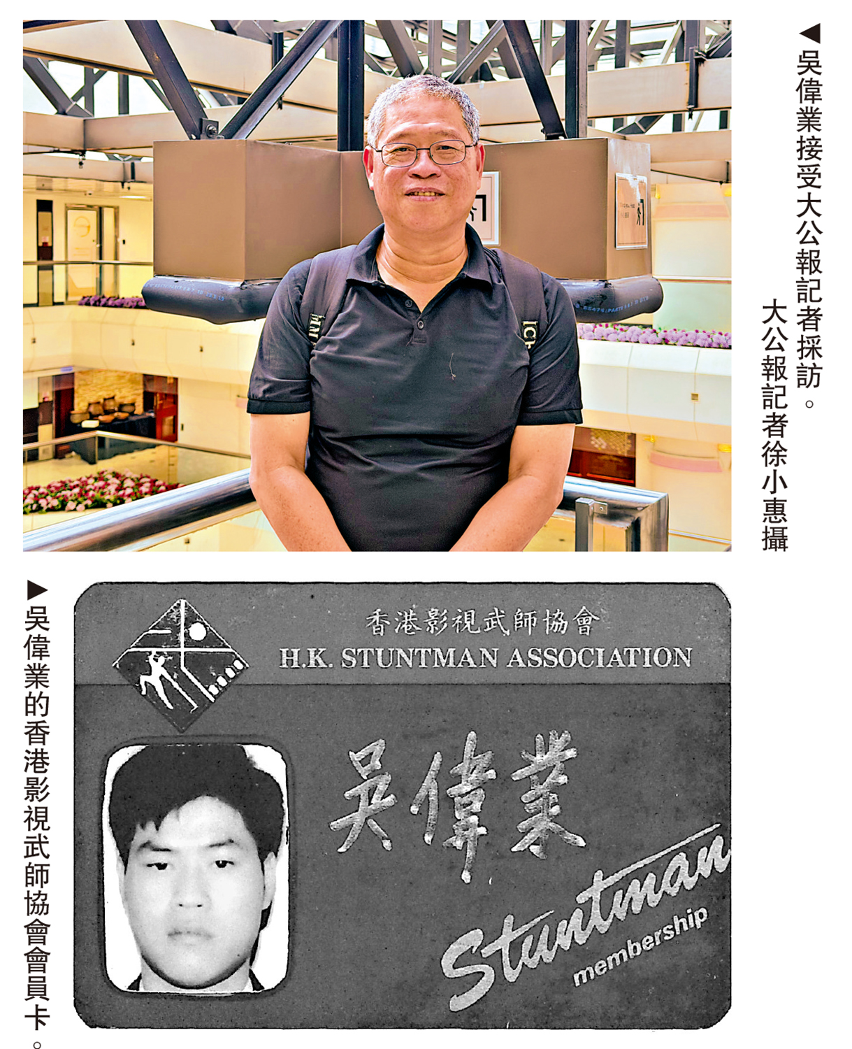 要不是女兒吳津津的新書《無名特技人七號──八十年代香港特技行業記趣》,吳偉業的生活其實已經離開特技這行很久。「我現在很少提自己特技演員的身份,不會和人家說我曾經是『成家班』的人。我師父王珅說,『成家班』不是我一個人,是成班人努力的結果。不應該把一整班人建立的東西,當做自己的財產。」走在尖東路口,沒有人知道這個穿着polo衫的普通男子曾在這裏一次又一次地做「空中飛人」。