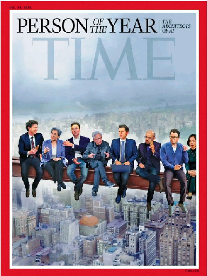 美國《時代》雜誌11日公布,以馬斯克、OpenAI行政總裁阿爾特曼、Facebook創辦人朱克伯格、芯片巨頭AMD行政總裁蘇姿丰、英偉達CEO黃仁勳與「AI教母」李飛飛等AI行業大佬為代表的「人工智能建築師」,榮獲「2025年度風雲人物」稱號。專家認為,這凸顯了AI及其背後的公司正以驚人的速度重塑社會。