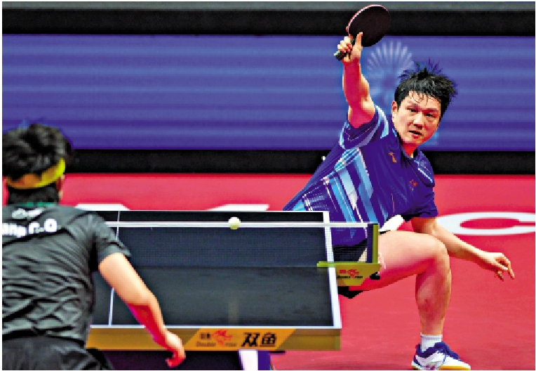 決賽舞台,面對小自己8歲的林詩棟,樊振東成功衛冕男單冠軍。握手環節結束後,他徑直走向球枱擋板外的直播設備,面對鏡頭「122」的慶祝動作一氣呵成。