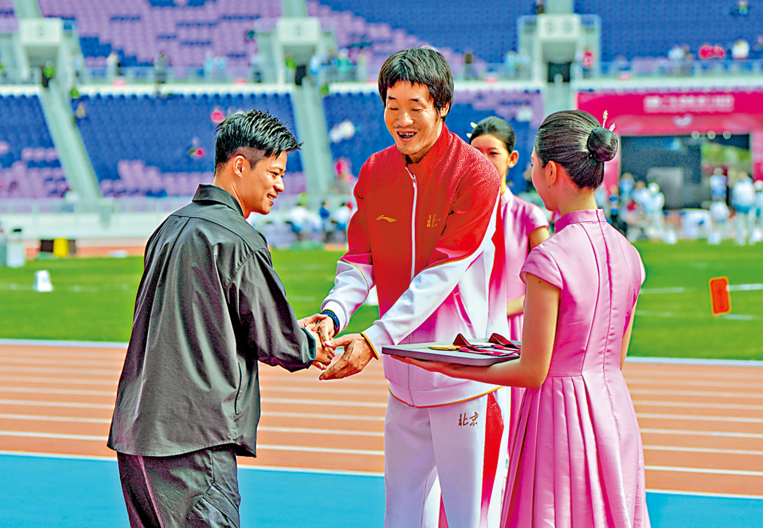 【大公報訊】記者敖敏輝廣州報道:12日,剛剛宣布退役的「亞洲飛人」蘇炳添現身全國殘特奧會田徑賽場。他以頒獎嘉賓的身份,為男子跳遠T13級決賽獲獎選手頒發獎牌。蘇炳添表示,殘疾運動員的意志力比健全人更堅強,應該向他們學習,互相尊重。他還呼籲社會各界要給予殘疾運動員更多關注,提供更多訓練保障。