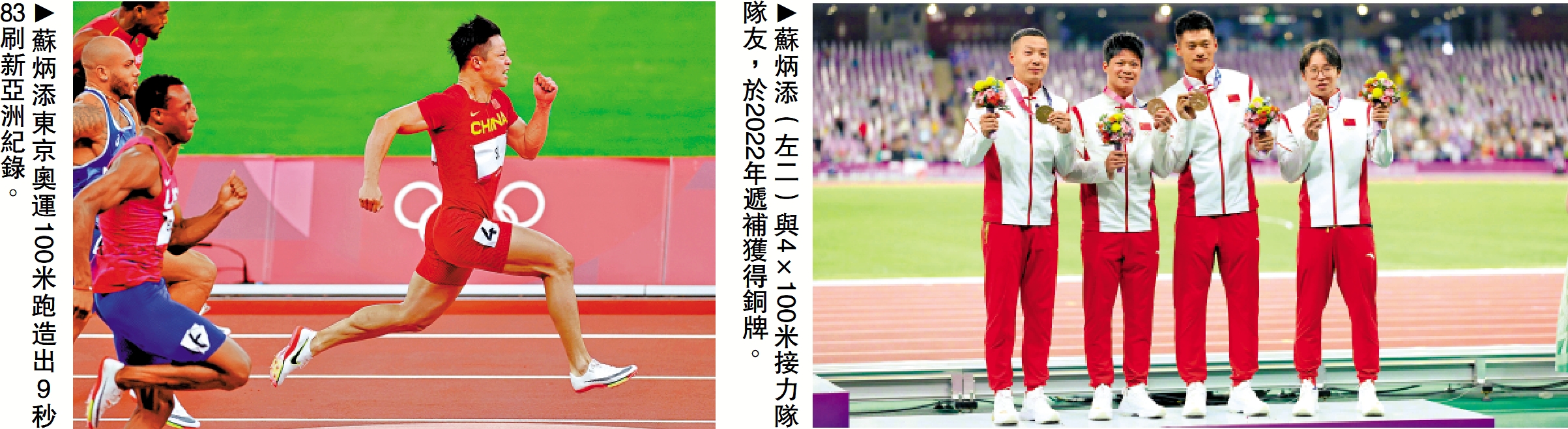 東京奧運會,蘇炳添一戰封神。他先是在男子100米準決賽中,跑出9秒83,以準決賽第一晉級決賽,同時創造了新亞洲紀錄。接着在兩個多小時後的決賽中,蘇炳添再次打開10秒大關,以9秒98的成績獲得第6名,創造了中國田徑新的歷史。