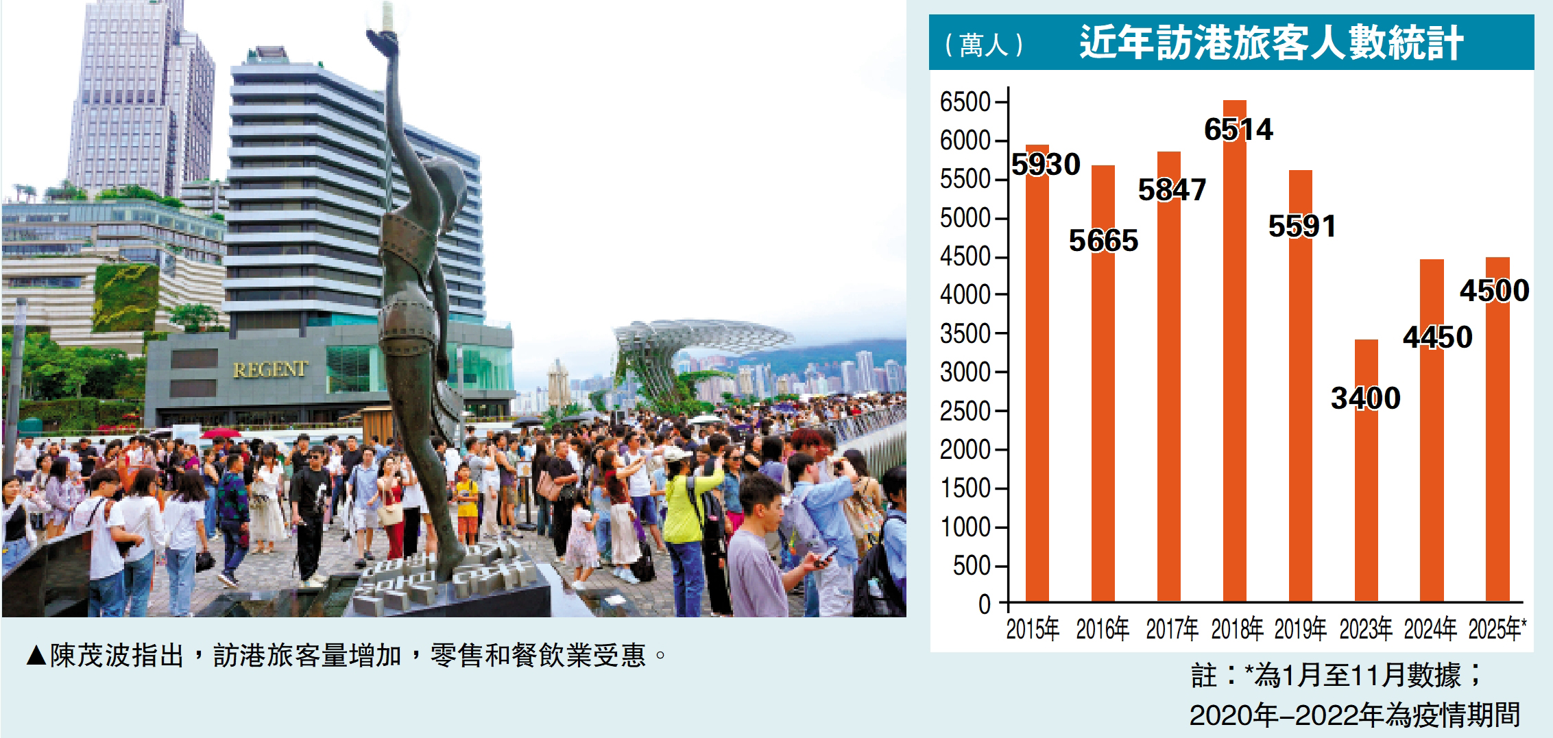 訪港旅客量增加,也支持了零售和餐飲市道。他指,即將來臨的聖誕和新年假期,形形色色的活動,以及業界的不同優惠推廣,盼能為市民創造更多與親友共聚、相互祝福的好時光,並吸引更多旅客到來,為消費市道,以至整體經濟注入更大的動力。