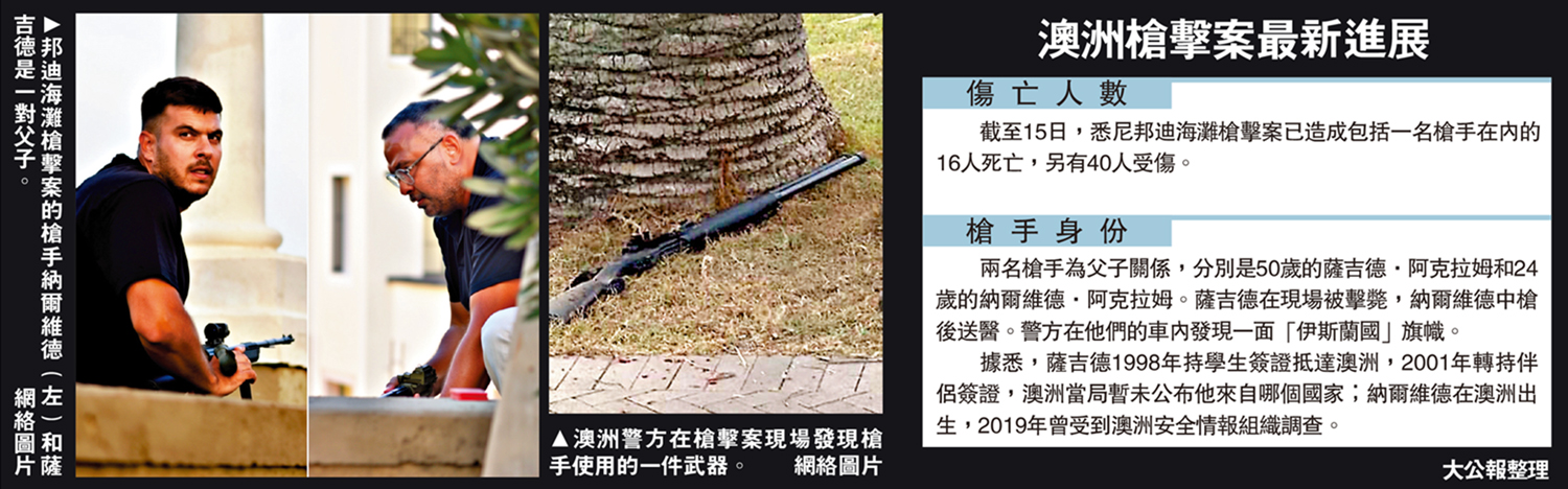 截至15日,悉尼邦迪海灘槍擊案已造成包括一名槍手在內的16人死亡,另有40人受傷。