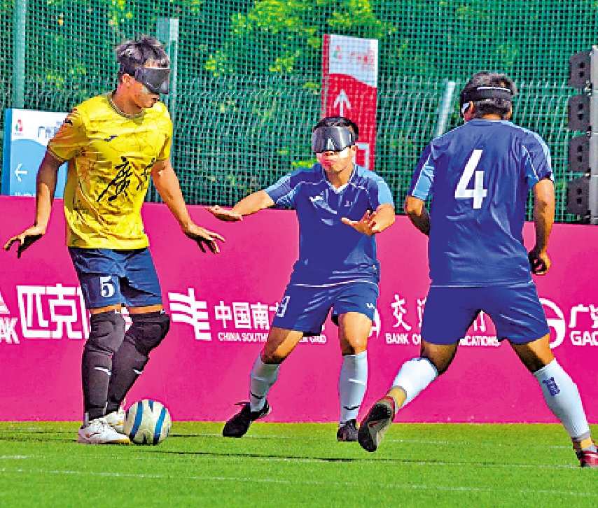 【大公報訊】記者敖敏輝廣州報道:15日是殘特奧會最後一個比賽日,在憑聽覺踢球的盲人足球男子組比賽中,廣東隊以3:0戰勝上海隊,最終以小組循環賽7勝1負的戰績奪得冠軍,福建隊、雲南隊分獲亞軍和季軍。在前一晚舉行的女子組比賽中,廣東則收穫亞軍。 比賽包括男子組和女子組,其中女子組為殘特奧會歷史首次設置。女子盲人足球比賽和男子盲人足球比賽均為5人制,除門將和引導員外,其餘隊員均為視障人士。比賽在長40米、寬20米的場地上進行。兩側邊線上都設有擋板,以保證球在比賽區域內。足球內安裝有可以發聲的響鈴,以便球員可以定位球的位置。