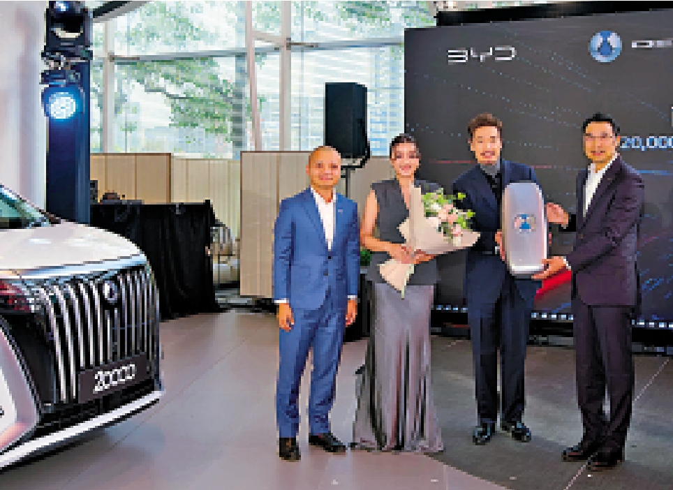 著名電視藝員陳豪、陳茵媺夫婦昨日出席「兩萬信賴 感恩同行」活動,成為比亞迪在香港交付的第20000輛新能源車車主。