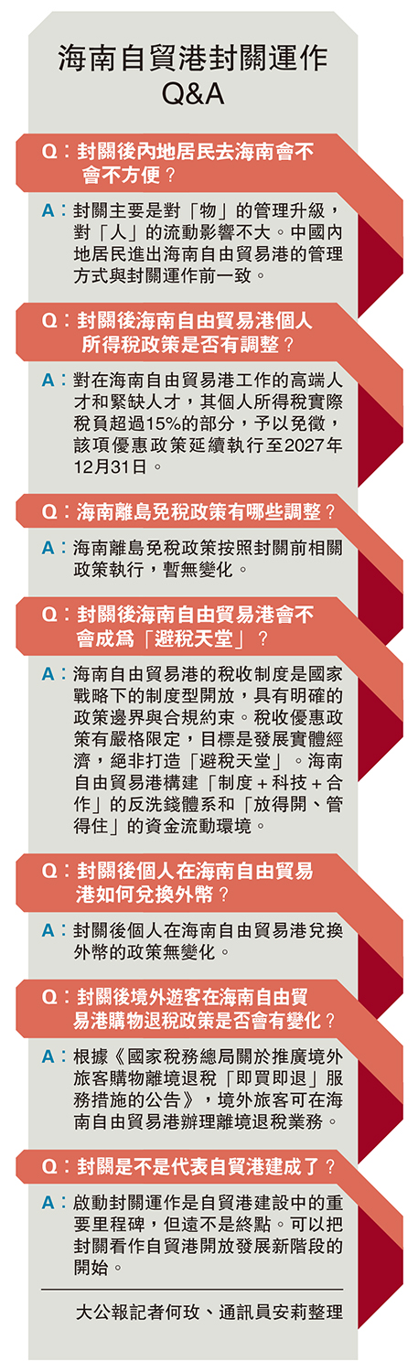 A:啟動封關運作是自貿港建設中的重要里程碑,但遠不是終點。可以把封關看作自貿港開放發展新階段的開始。