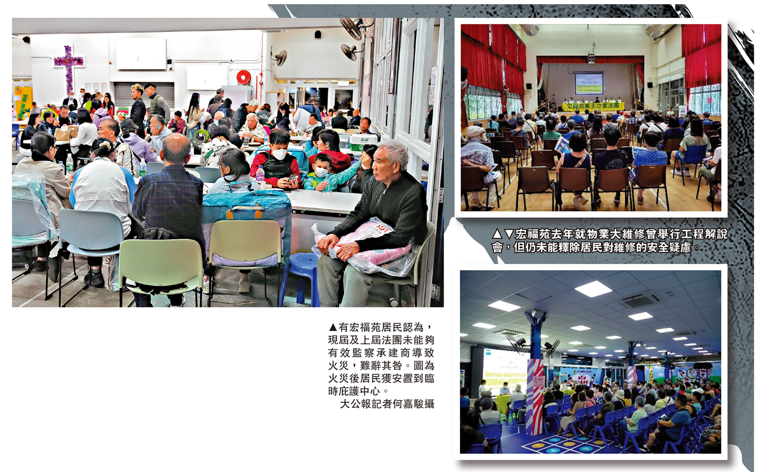 有宏福苑居民向《大公報》表示,承建商「宏業建築工程」未能保障施工安全,確保工程物料包括棚網符合防火安全標準,要負上主要責任;現屆及上屆法團未能夠有效監察承建商,最終導致住戶痛失家園,同樣難辭其咎。\大公報記者 馮錫雄