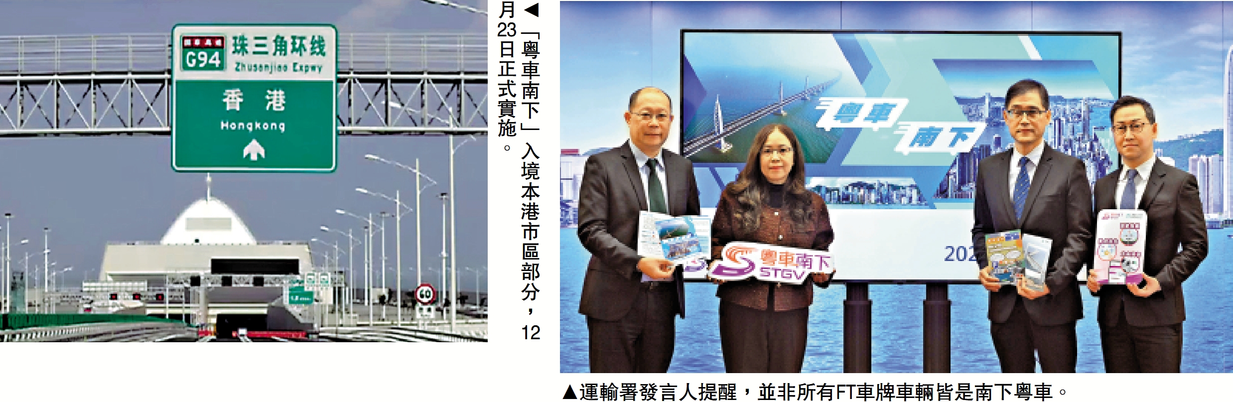 運輸署發言人表示,本月9日開始接收由內地部門完成的初審申請後會再審核,在完成港方的程序後,內地部門會發送批准通知。車主出發前,要安裝以「FT」開頭的香港車牌,及為「易通行」增值。「粵車南下」的車主需在車頭掛上香港車牌,以供易通行系統識別收取隧道收費。「粵車南下」相關許可證有效期為一年,日後如車主想續期申請,可沿用同一車牌。運輸署發言人表示,現時部分本地車主車牌亦是「FT」開頭,故並非所有FT車牌車輛都是「粵車南下」車輛。