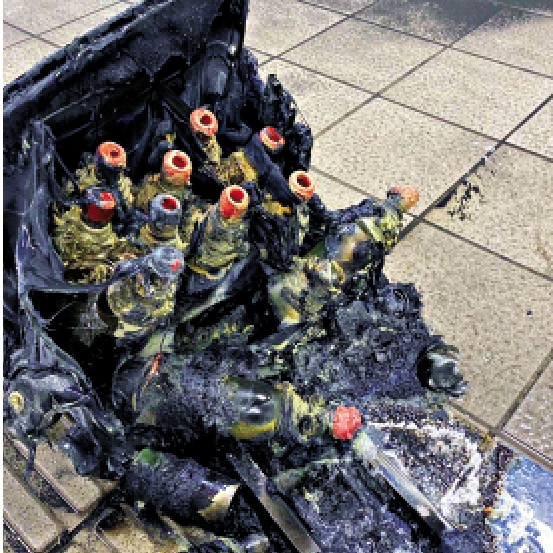 嫌犯在犯罪過程投擲煙霧彈,根據照片顯示,為生存遊戲所使用的M18煙霧彈,於網站上均可購得,可持續發煙85秒至100秒。