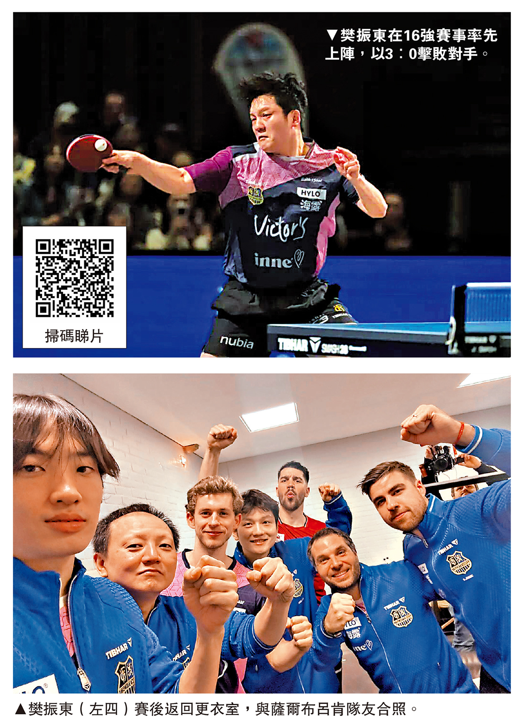 在19日進行的2025至2026賽季歐洲乒聯男子冠軍聯賽16強次回合比賽中,薩爾布呂肯隊在主場以3:0橫掃比亞韋斯托克隊,晉級8強階段。代表主隊的中國運動員、奧運冠軍樊振東以3:0完勝對手,在職業生涯首場歐冠比賽中,拿下「開門紅」。在8強賽事,薩爾布呂肯隊將對陣德國格倫韋特斯巴赫隊與法國埃訥邦隊之間的勝者。