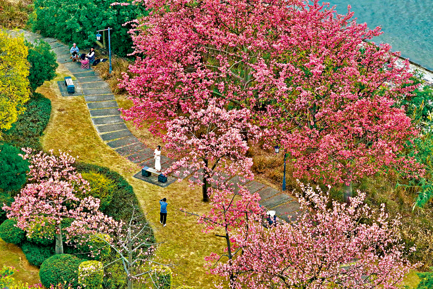 近日,福州冬日暖陽,不少市民前往公園慢跑、散步,享受着暖冬裏的休閒時光。\中新社