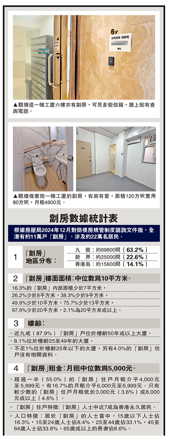 根據房屋局2024年12月對簡樸房規管制度諮詢文件指,全港有約11萬戶「劏房」,涉及約22萬名居民。
