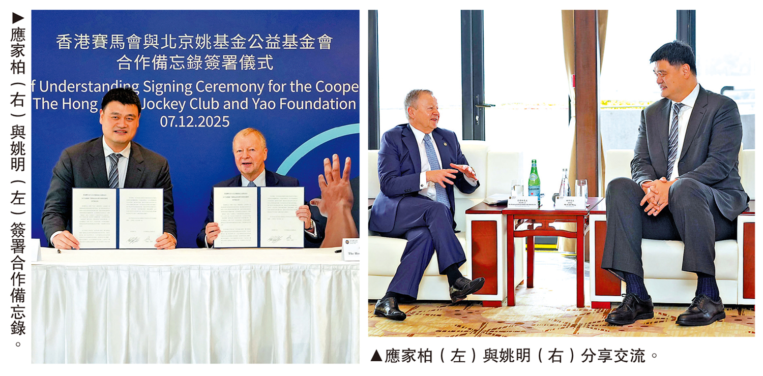 【大公報訊】香港賽馬會(馬會)與北京姚基金公益基金會(姚基金)簽署合作備忘錄,共同加強推廣籃球運動及青年體育發展,響應國家體育強國建設及進一步推進體育產業高質量發展。