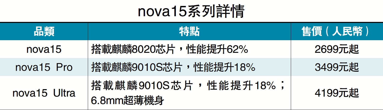 【大公報訊】記者毛麗娟深圳報道:昨日華為nova15系列手機及全場景新品正式發布。nova15系列以麒麟9系旗艦芯片為算力核心,鴻蒙OS 6.0為生態底座,在衛星通信、影像系統、機身設計三大領域實現技術革新。此外,現場還帶來華為MatePad 11.5、華為WATCH十周年款、華為WATCH GT 6、華為鴻蒙智家等多款新品。華為終端BG CEO何剛透露,截至目前,搭載HarmonyOS 5及HarmonyOS 6的終端設備數已突破3200萬,越來越多用戶堅定選擇並支持鴻蒙,鴻蒙也將持續打造更安全、更流暢、更智能的用戶體驗。