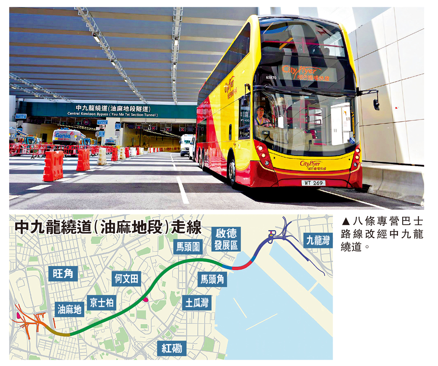 中九龍繞道(油麻地段)通車後迎來首個工作日,累計逾50000車次使用繞道,油麻地西九龍公路以及麗翔道的入口,早上繁忙時間未見擠塞,車輛可以直接駛入繞道的隧道段。運輸及物流局局長陳美寶表示,九龍區主要幹道的交通情況有很明顯改善,符合設計預期。昨日有八條專營巴士路線途經新繞道,不少乘客認為整體行車較暢順。有從天水圍到觀塘的上班族表示,巴士改行新繞道,行車時間較以往縮短約10分鐘,「節省了十分鐘時間,可以買杯咖啡飲」;有市民希望日後有更多常規路線改行新路,節省出行時間。\大公報記者 肖泓宇