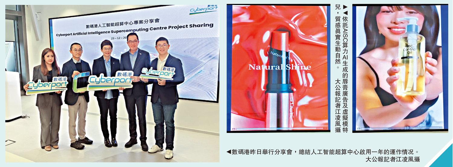 數碼港業務發展部總監霍露明介紹,全港規模最大的數碼港人工智能超算中心(AISC),自2024年12月投入服務,為香港人工智能產業及相關研發提供所需的高階算力基礎、支援本地大學、研發機構及相關行業的算力需求,目前使用率約八成。AISC提供3000PFLOPS算力,相當於一小時可完成近100億張圖像處理、超過1100萬小時語音翻譯,及處理超過4萬公里的自動駕駛人工智能數據。目前,AISC已成功獲得ISO/IEC 27001:2022資訊保安認證,標誌着用戶在使用AISC資源研發及應用技術的過程中,能夠提供符合國際標準的資料安全與私隱保護。同時,AISC為不同階段的研發項目提供強大算力,支援項目由研發階段到落地應用的完整開發周期。