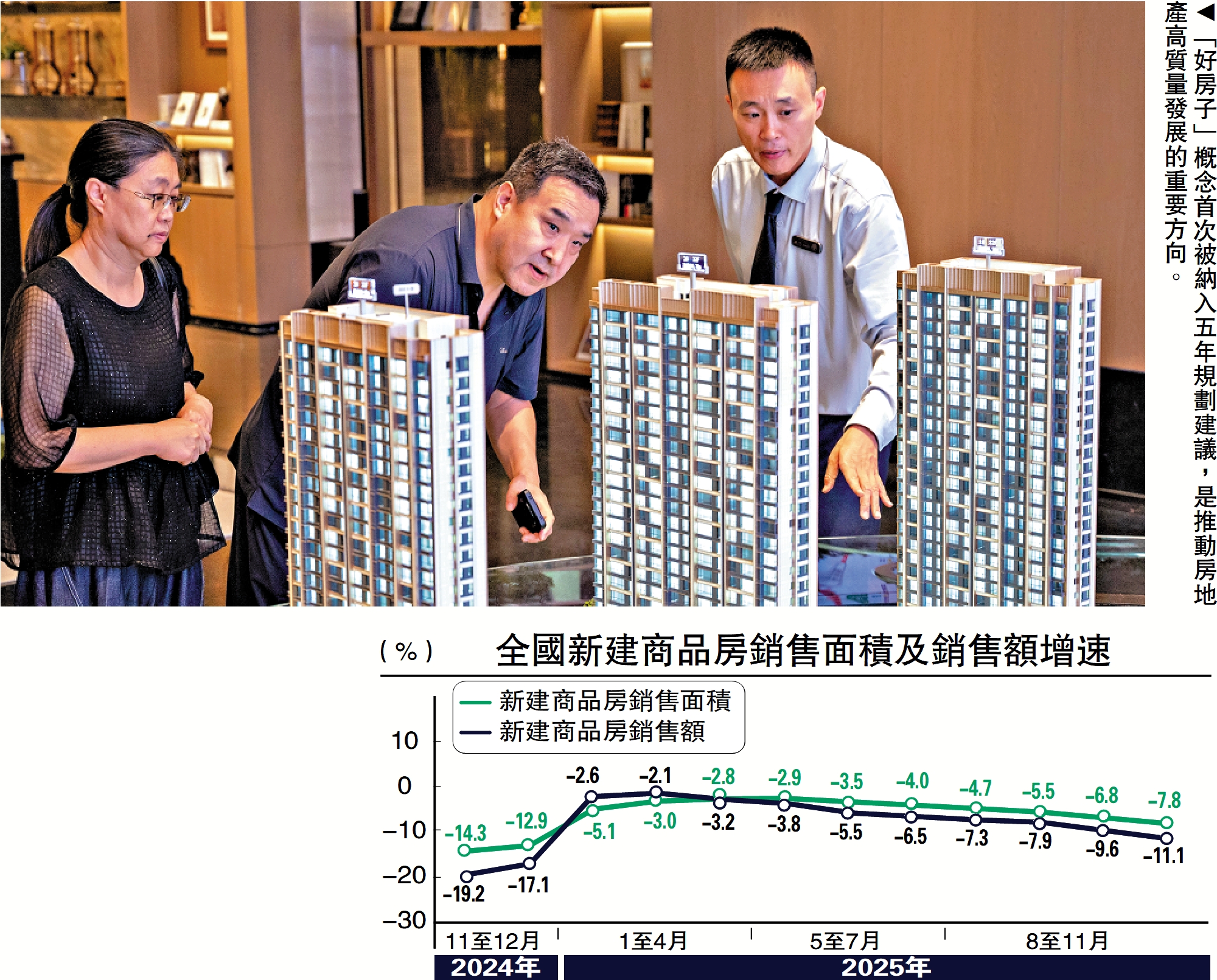 「好房子」概念首次被納入五年規劃建議,是推動房地產高質量發展的重要方向。「好房子」建設聚焦「安全、舒適、綠色、智慧」四大維度,涵蓋建築保溫、隔熱、隔音、防水等技術標準,以及物業服務、社區無障礙配套、適老化改造等宜居相關標準。新的住宅項目國家標準已於2025年5月1日生效,為「好房子」建設提供了技術依據和規範。