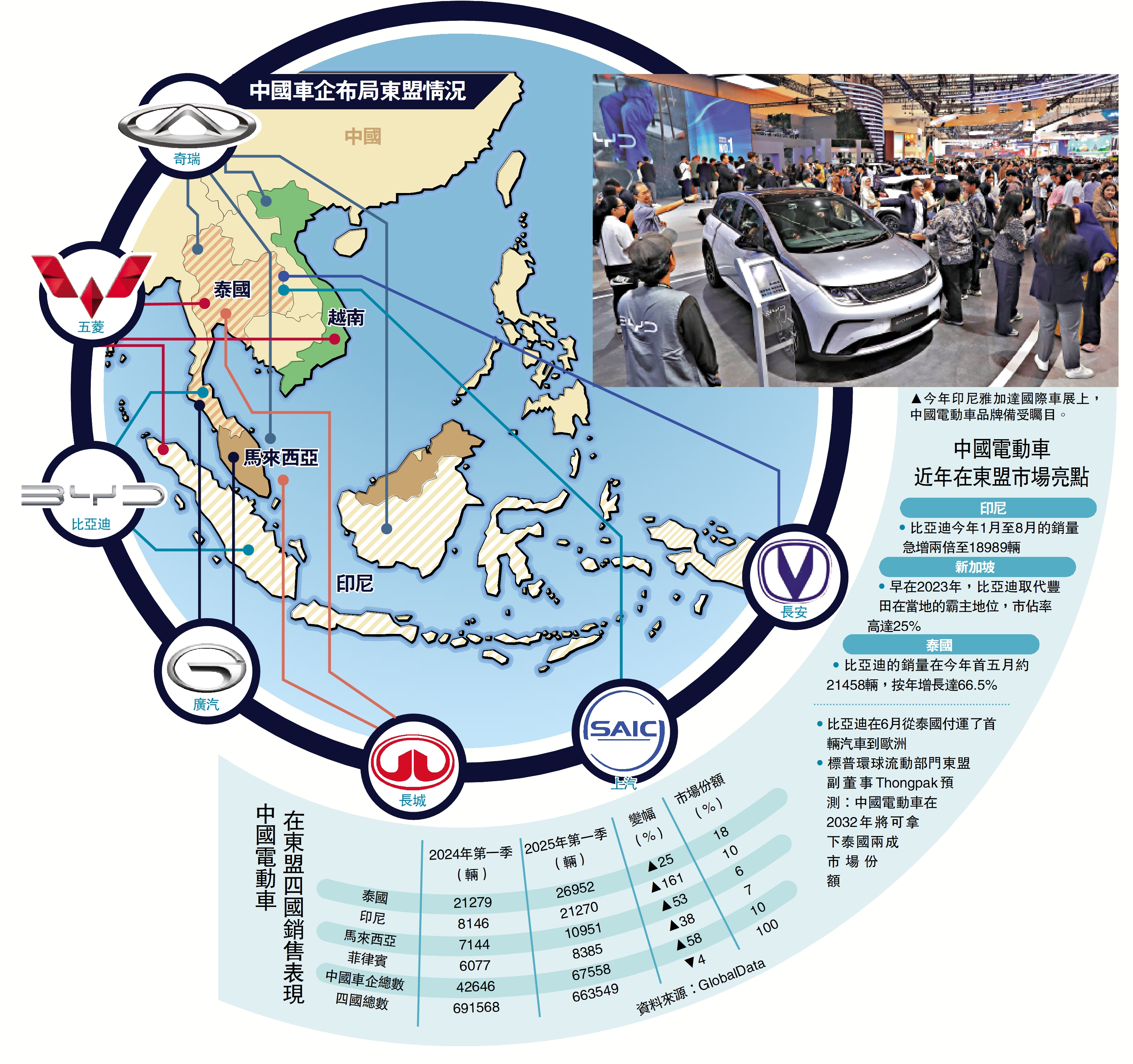 面對國內市場內捲的競爭壓力,中國的電動車製造商已把視野擴闊至鄰近的市場,尤其是已跟中國簽訂全區自由貿易協議的東盟地區,因入口汽車可獲免稅。