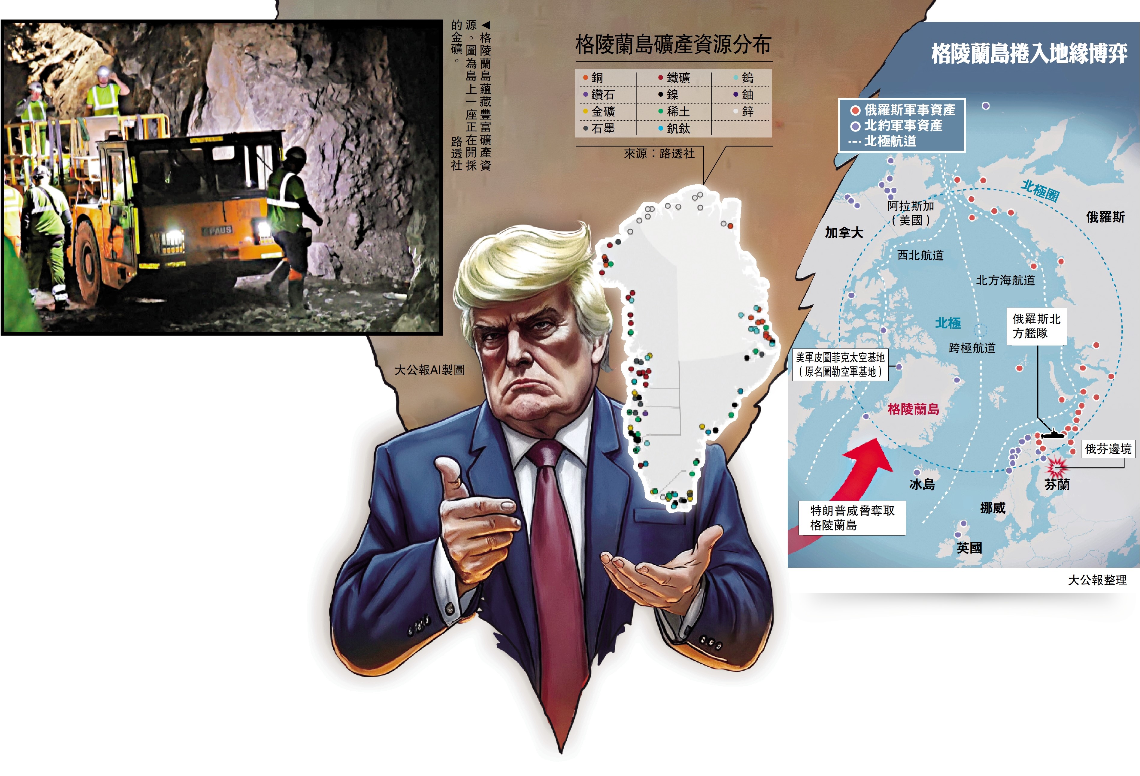 美國總統特朗普重返白宮以來多次揚言奪取丹麥自治領地格陵蘭島,這種不加掩飾的擴張野心背後暗藏地緣戰略、經濟利益等多重圖謀。隨着全球變暖、冰川加速消融,北極航道的價值日益凸顯,北極地區成為美俄等國博弈的新戰場,而控制格陵蘭島將讓美國佔據優勢。格陵蘭島本身也蘊藏着豐富的礦產和能源。專家指出,特朗普奉行「資源帝國主義」,企圖掠奪島上資源。