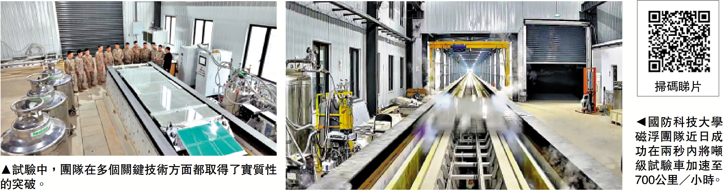 【大公報訊】據科技日報報道:國防科技大學磁浮團隊近日在磁懸浮試驗中,成功在兩秒內將噸級試驗車加速至700公里/小時。測試速度打破了同類型平台全球紀錄,成為全球最快的超導電動磁懸浮試驗速度。