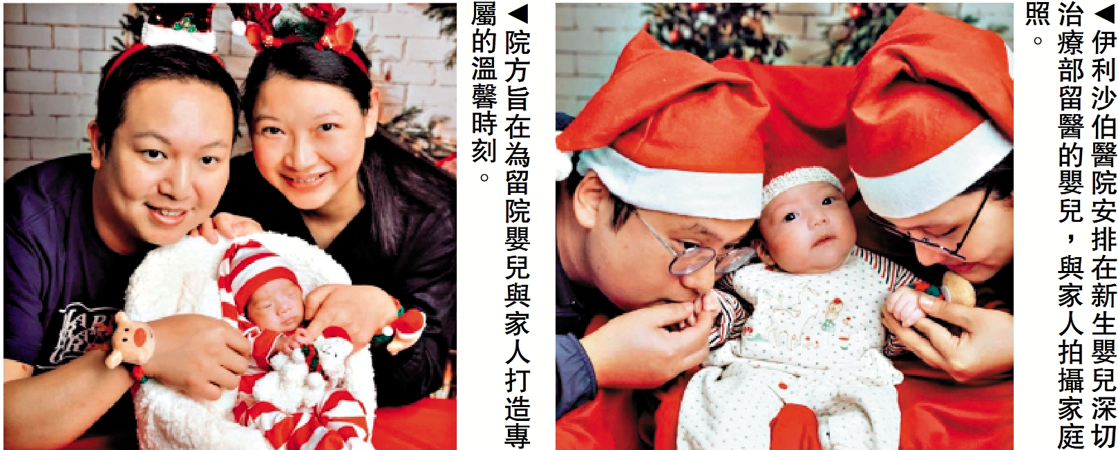 【大公報訊】記者易曉彤報道:聖誕佳節,本應是全家團聚歡慶的時刻,但對於早產或有特殊醫療需要的嬰兒家庭而言,醫院新生嬰兒深切治療部的病房成為他們暫時的「家」。受感染控制規定限制,父母僅能輪流探視,其他家人更是難與寶寶相見,節日的溫暖似乎與他們隔着一道病房門。