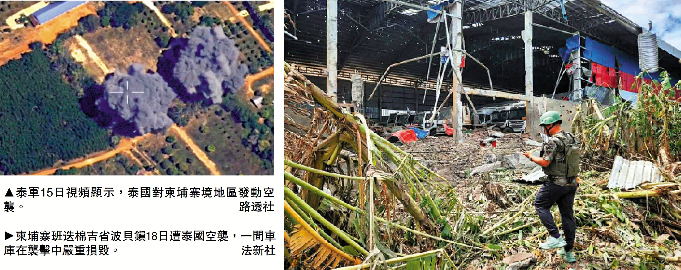 停火協議生效前,柬埔寨國防部報告稱,泰國當天(27日)凌晨出動F-16戰機,對柬埔寨西北部班迭棉吉省一處目標投擲4枚炸彈。此前一天,泰國F-16戰鬥機轟炸了班迭棉吉省另一個邊境村莊,投彈多達40枚,導致房屋和基礎設施被摧毀,未有人員傷亡報告。泰國軍方證實26日的襲擊,稱是陸軍和空軍聯合行動,目的是保護泰國沙繳府,該地區與班迭棉吉省接壤。另據半島電視台報道,在班迭棉吉省的小鎮波貝,直到停火協議生效的那一刻,交火仍非常激烈。