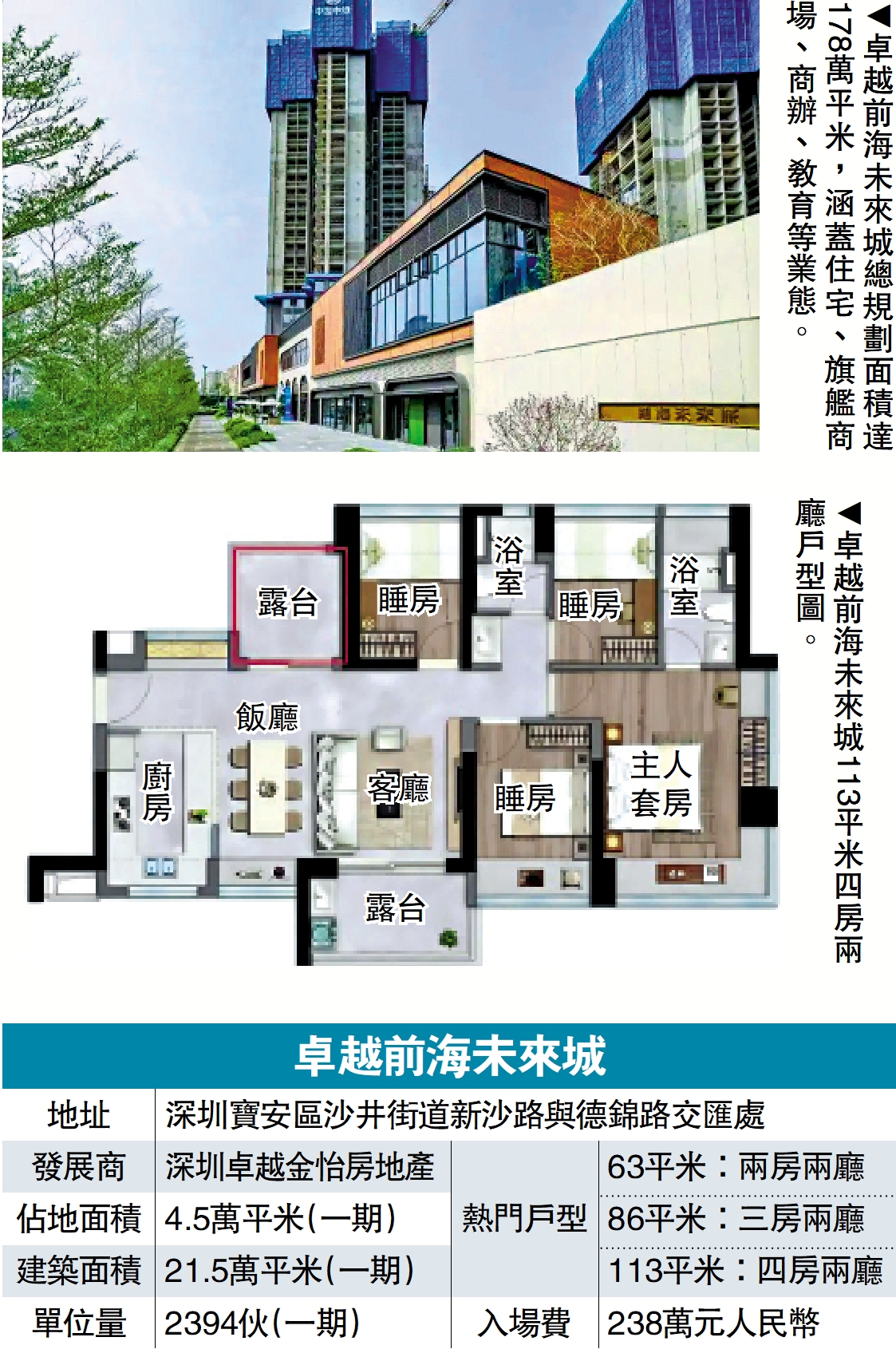當前,寶安區新盤每平米均價約5.6萬元,卓越前海未來城價格明顯具優勢。業主王女士坦言:「雖然周邊城市面貌尚待提升,但前海擴容、會展經濟、海洋新城等規劃紅利逐步釋放,長期看升值空間較大。」