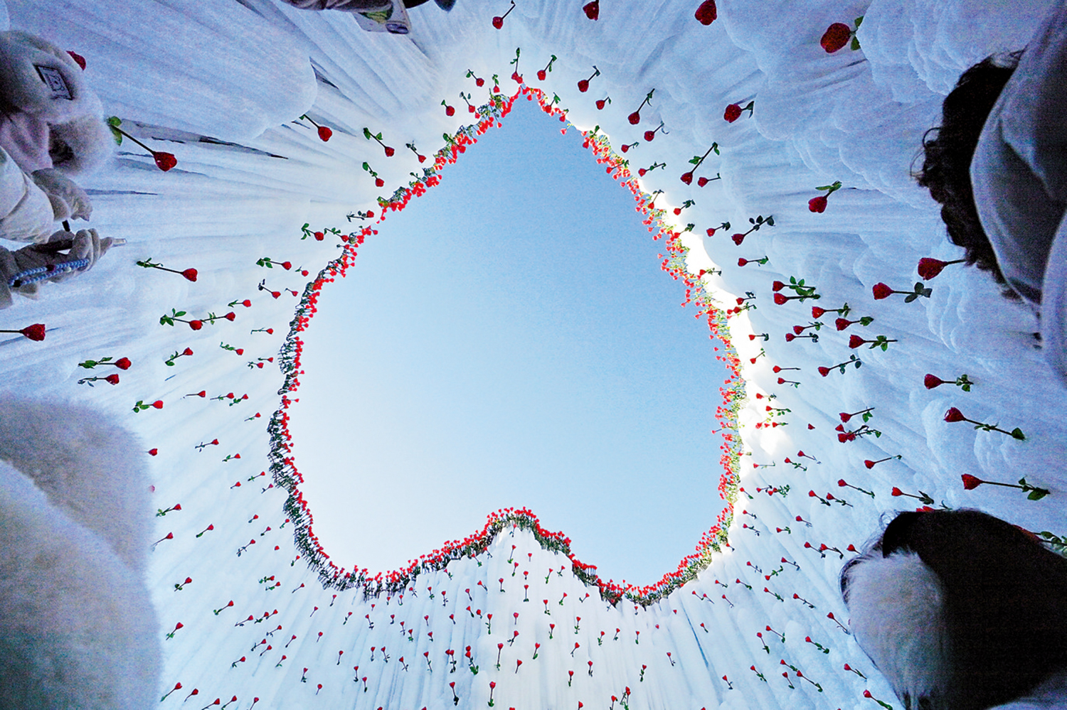 近日,吉林長白山,「冰心玫瑰」吸引眾多遊客前來參觀。冰心島景點位於長白山麓角村,心形輪廓與環繞的玫瑰相呼應,渲染出浪漫的冬日氛圍,成為冬季熱門打卡地。\中新社