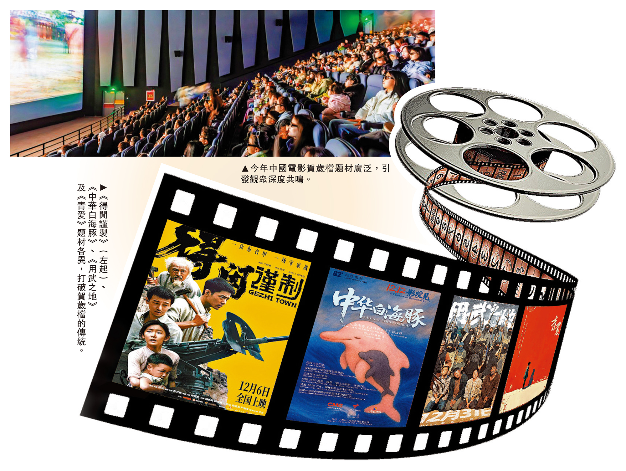 不同於往年喜劇、闔家歡題材為主導的局面,今年70餘部影片涵蓋歷史、懸疑、紀錄、溫情、奇幻、公益等多元類型。抗戰題材影片《得閒謹製》、紀錄影片《中華白海豚》、聚焦援藏幹部影片《遙遠的普若崗日》、青少年防艾公益電影《青愛》等「非典型賀歲片」的出現,打破了賀歲檔傳統。