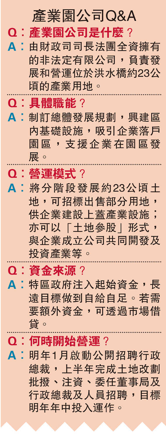 A:明年1月啟動公開招聘行政總裁,上半年完成土地改劃批撥、注資、委任董事局及行政總裁及人員招聘,目標明年年中投入運作。