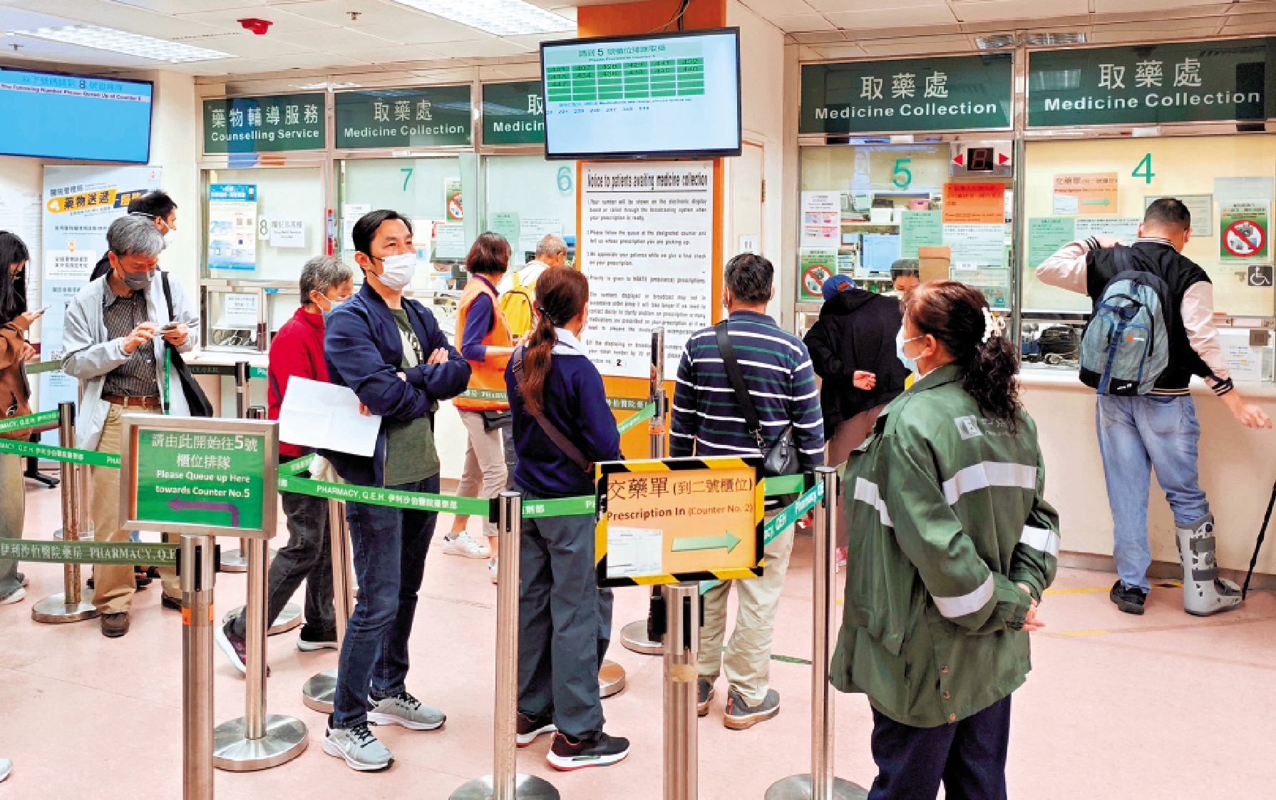 各公立醫院已加派人手,包括服務大使、專隊職員及義工等,派駐在門診、繳費處、藥房等地方,專責解答病人查詢、協助處理繳費、預約及申請醫療費用減免等安排。