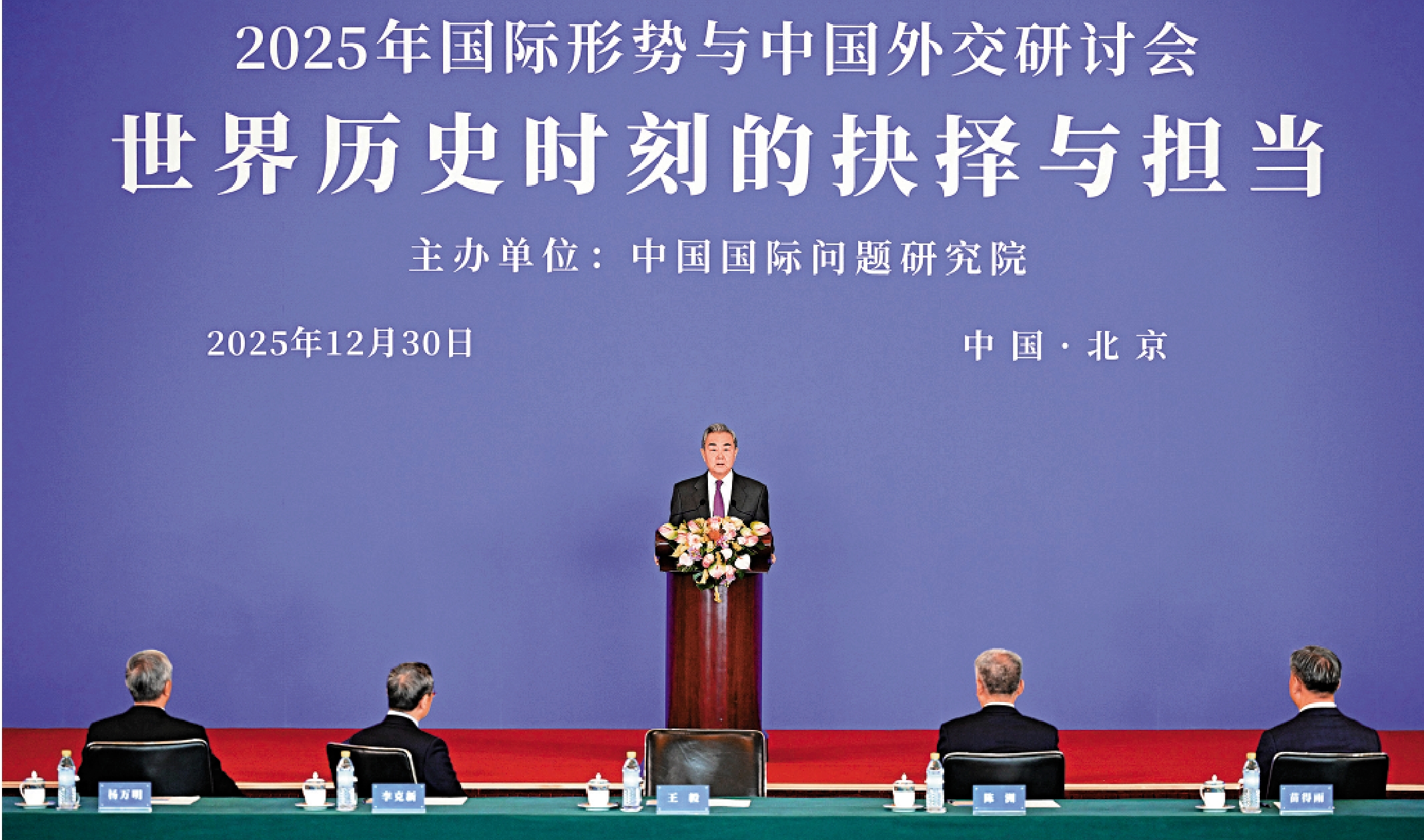 12月30日,中共中央政治局委員、外交部長王毅在北京出席2025年國際形勢與中國外交研討會開幕式並作主旨發言。他表示,我們必須高度警惕日本軍國主義沉渣泛起,必須堅決捍衛用鮮血換來的二戰勝利成果,必須有效維護來之不易的和平穩定。