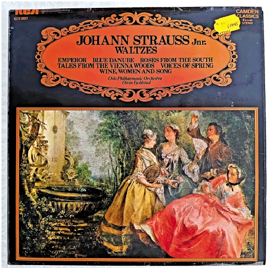 元旦將至,二○二六年已在轉角處。一年一度的維也納新年音樂會也進入倒計時。這場古典樂迷的年度盛事,其最膾炙人口的傳統之一便是返場曲目中著名的小約翰·施特勞斯名曲《藍色多瑙河》。本周應景地推薦一張他的《圓舞曲集》。這張發行於整六十年前的黑膠由英國RCA唱片公司灌錄,挪威指揮家菲爾斯塔德執棒奧斯陸愛樂樂團聯袂演繹了共六首小施特勞斯的圓舞曲,包括《皇帝圓舞曲》、《藍色多瑙河圓舞曲》、《春之聲圓舞曲》等作曲家最受歡迎的作品。專輯封套選擇了十八世紀法國洛可可畫家尼古拉斯·郎克雷《一日四時》系列中的《正午》。