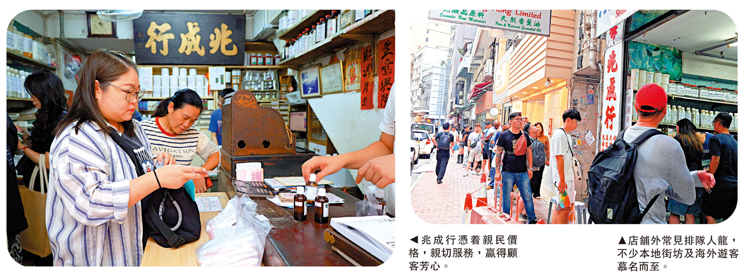 來自甘肅的張同學在社交平台上多次看到有關兆成行的分享,得知舒淇曾光顧、歷史悠久、可DIY香水,在明星效應、老字號信譽與自主調配的三重吸引下,她感覺這家店「很有意思」,有種「在喧囂城市中堅守本真」的吸引力,特意將其列入香港行程。